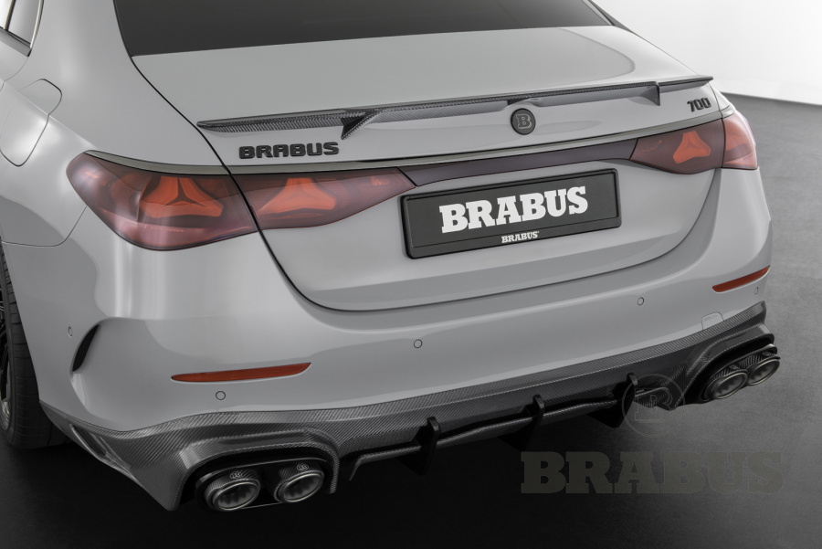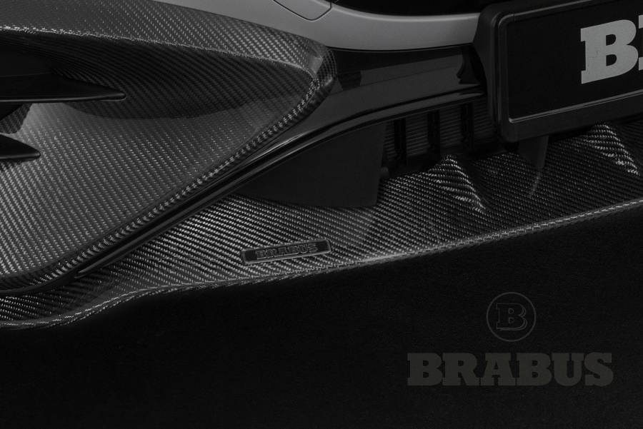 Задний диффузор, смоделированный как классический гоночный диффузор, идеально вписывается в общий вид. Задний диффузор изготовлен из высокопрочного карбона, дополнен 4-мя насадками из карбона/титана. Он устанавливается вместо штатного заднего диффузора и подходит как к штатной выхлопной системе, так и к спортивной клапанной выхлопной системе BRABUS.