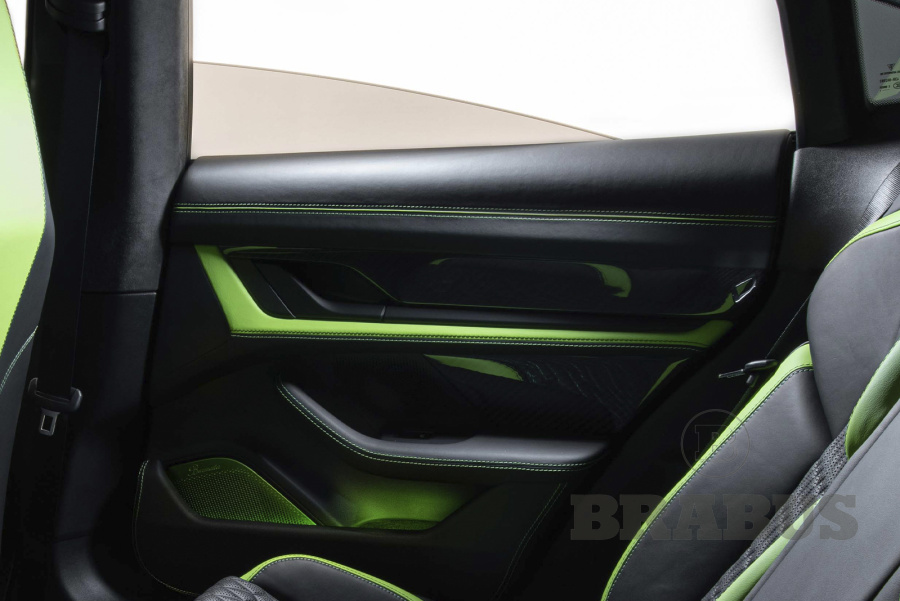 Для создания непревзойденной атмосферы в салоне: Четыре дверные панели, включая отсеки для хранения, полностью отделанные тонкой кожей/алькантарой BRABUS.