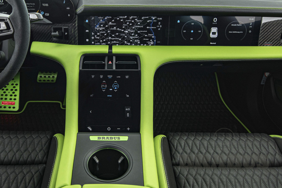 Для создания непревзойденной атмосферы в салоне: Центральная консоль, включая подлокотник, отделанная тонкой кожей/алькантарой BRABUS.