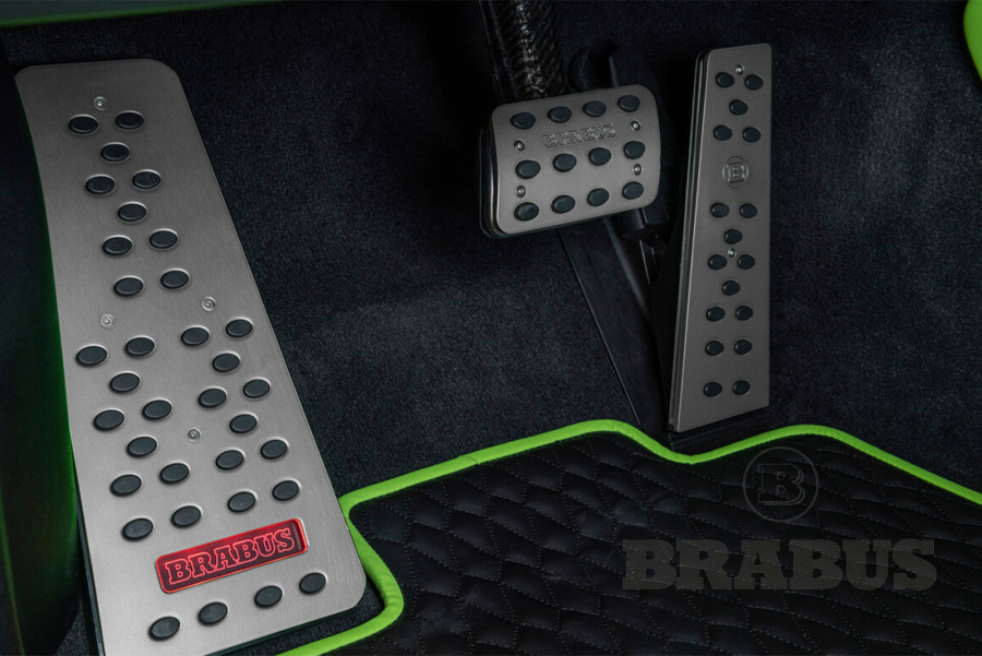 Спортивный вид, надежное сцепление: Стильные накладки на педали BRABUS из матового анодированного алюминия.