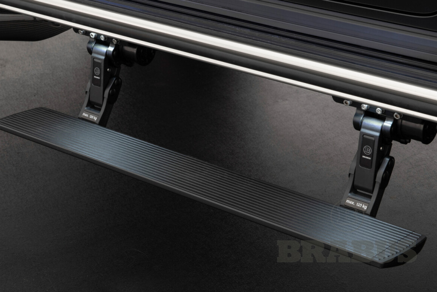 Светодиодные фонари в расширителях арок WIDESTAR подсвечивают выдвижные пороги и логотипы BRABUS, встроенные в расширители.