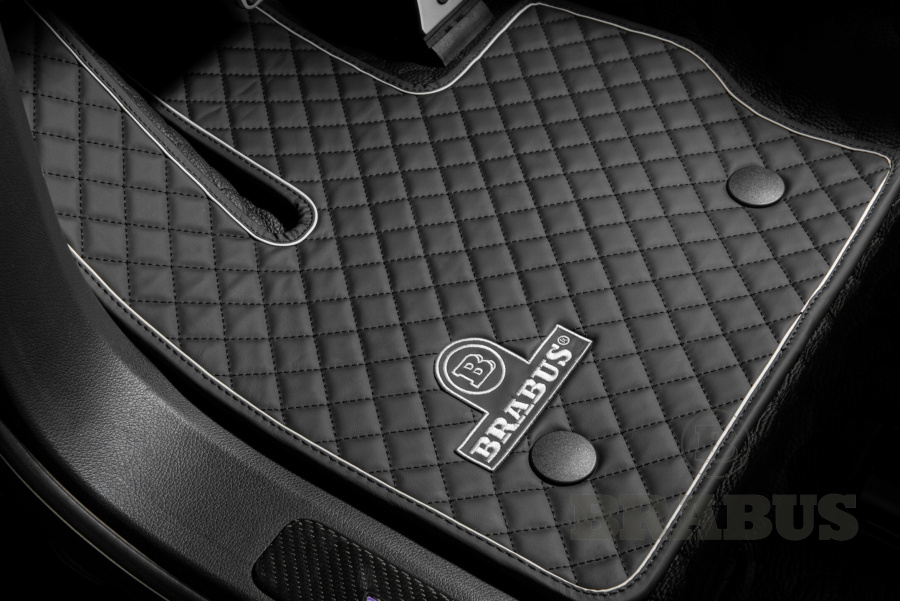 Комплект из пяти стеганых ковриков из черной кожи с серой строчкой и вышитым логотипом BRABUS.