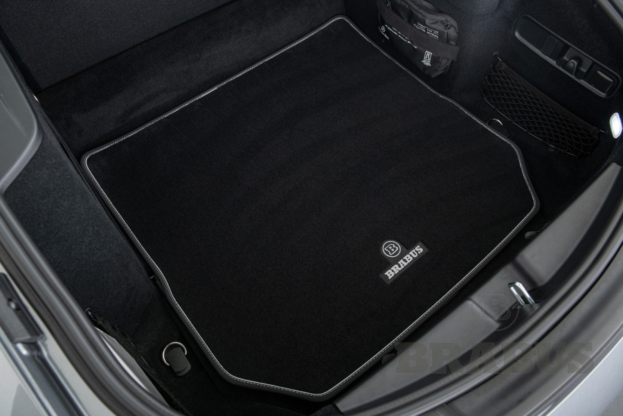Велюровый коврик в багажник с отделкой из нубука, кантом по всему периметру, серебристой отстсрочкой, вышитым логотипом BRABUS.